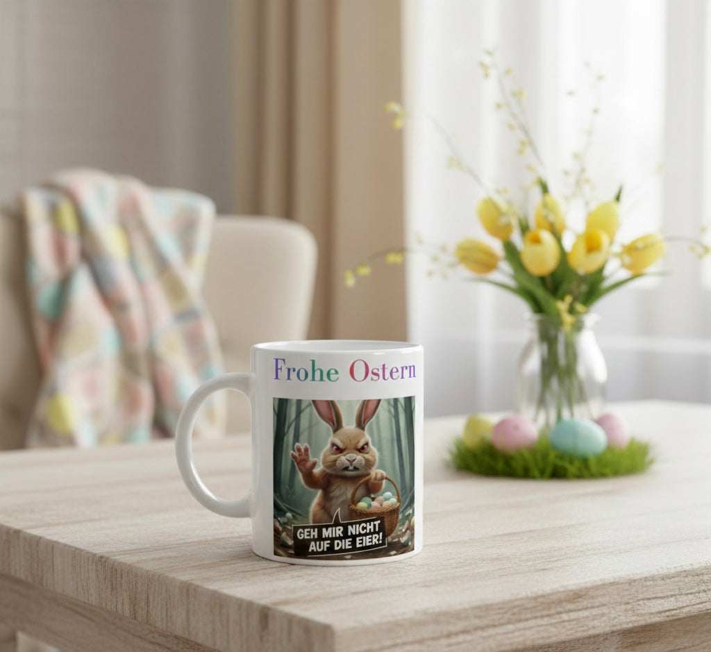 Lustige Ostertasse – Grimmiger Hase „Geh mir nicht auf die Eier“ – Witziges Ostergeschenk | Tassenworte